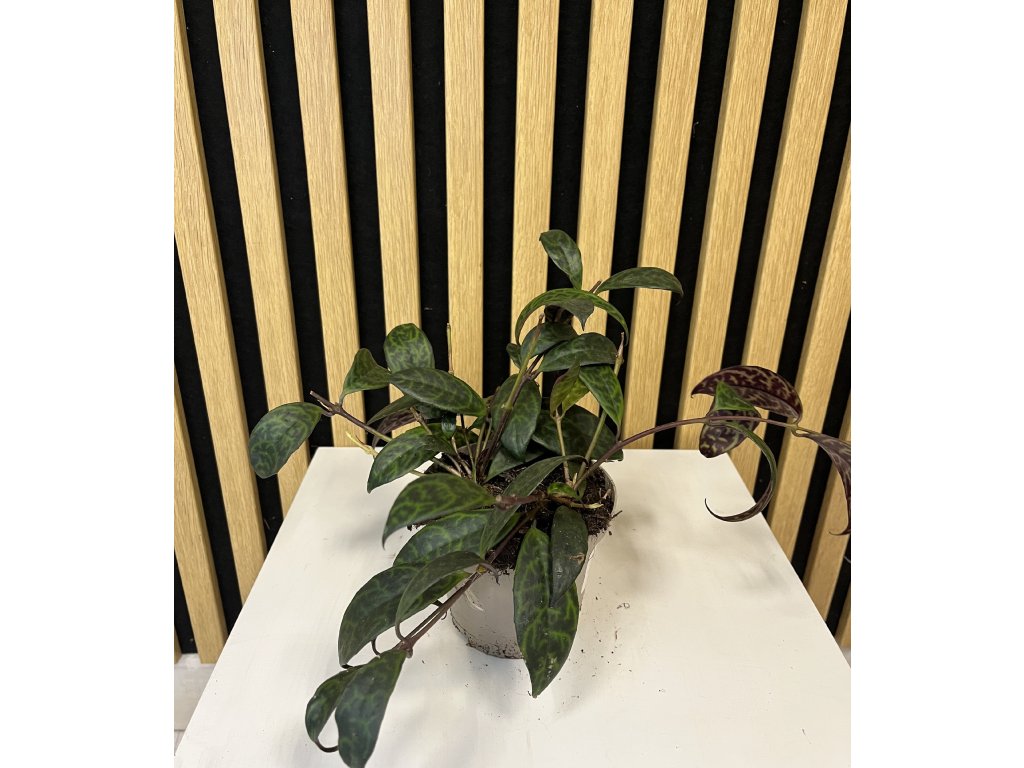 Aeschynanthus marmoratus je výjimečná převislá pokojová rostlina, která zaujme svými podlouhlými, sametově zelenými listy s jemným mramorovaným vzorem na lícní straně a výrazně vínovou barvou na rubu. Pochází z tropických oblastí jihovýchodní Asie, kde roste jako epifyt v korunách stromů – proto se skvěle hodí do závěsných květináčů nebo vyšších polic, odkud může volně splývat. Je to dekorativní rostlina s nenáročnou péčí a elegantním vzhledem, který dodá interiéru exotický nádech.