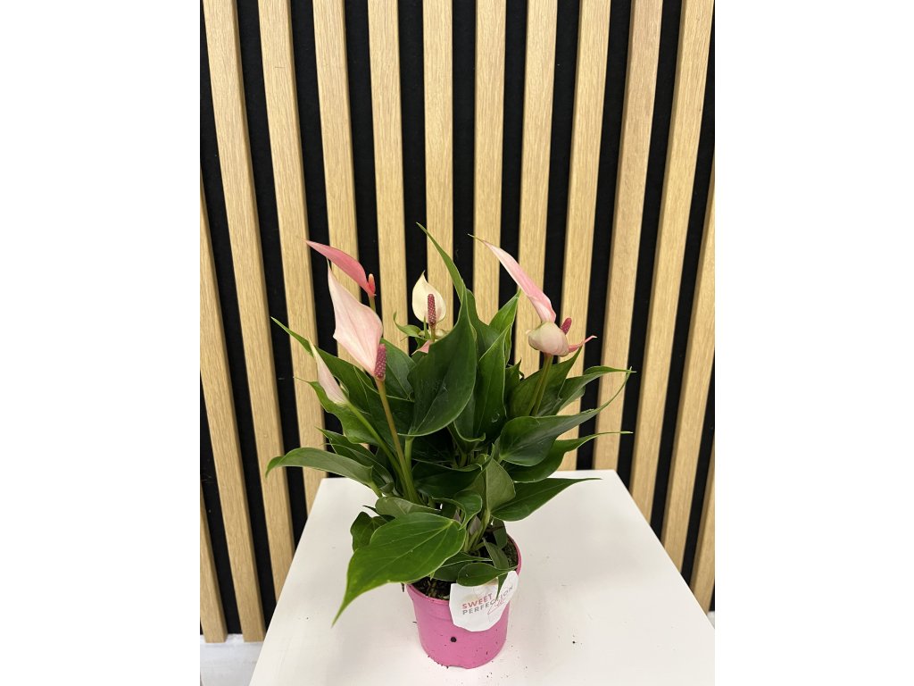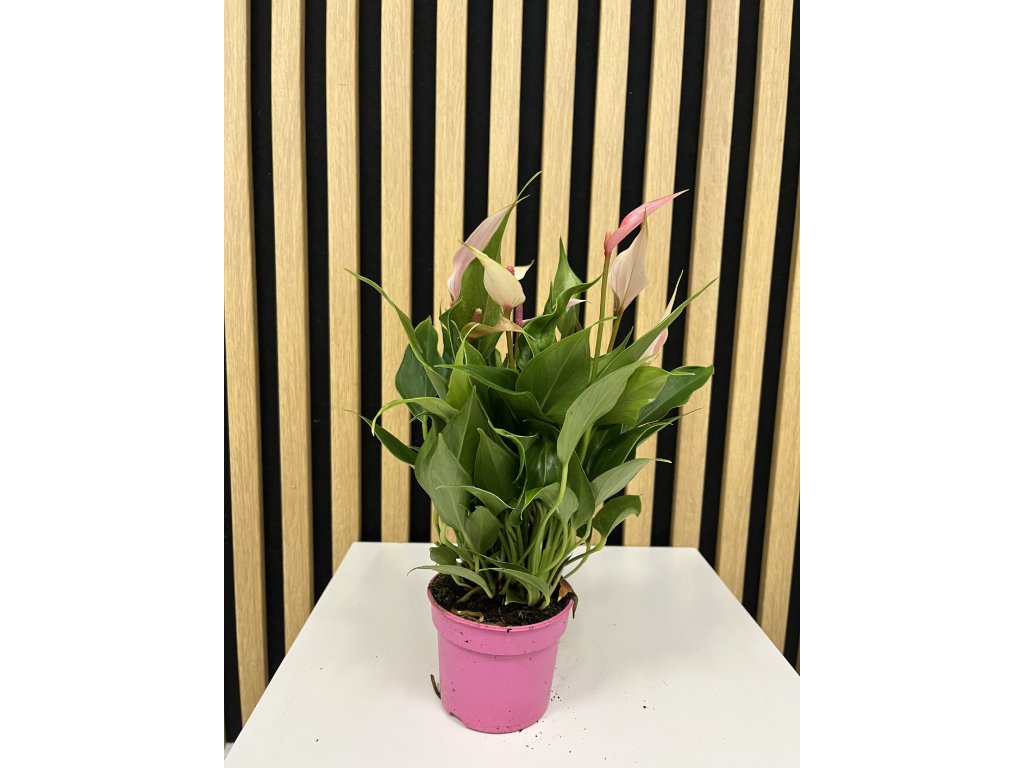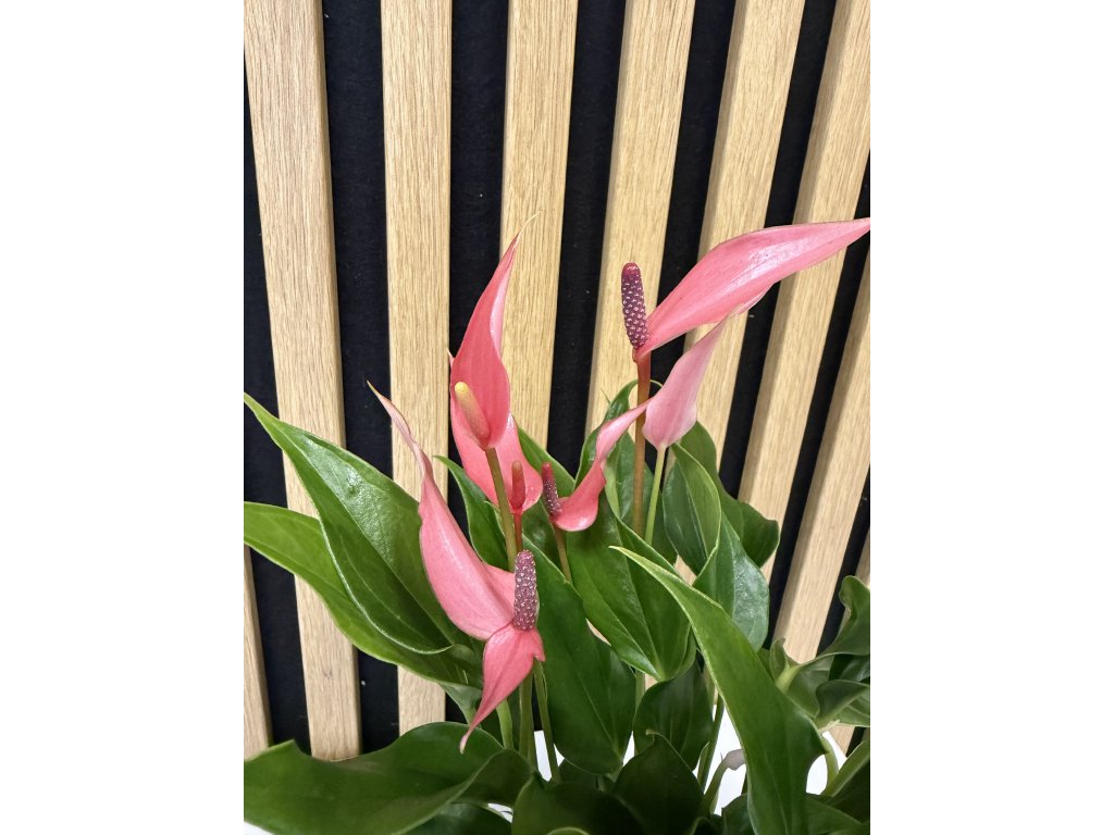 Anthurium Lilli je půvabná pokojová rostlina, která si okamžitě získá pozornost svými něžnými růžovými toulci a lesklými, sytě zelenými listy. Patří mezi moderní a velmi oblíbené odrůdy anturií, které působí jemně, romanticky a zároveň luxusně. Díky své dlouhé době kvetení je ideální jako dekorace do interiéru i jako originální dárek.