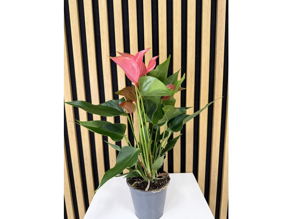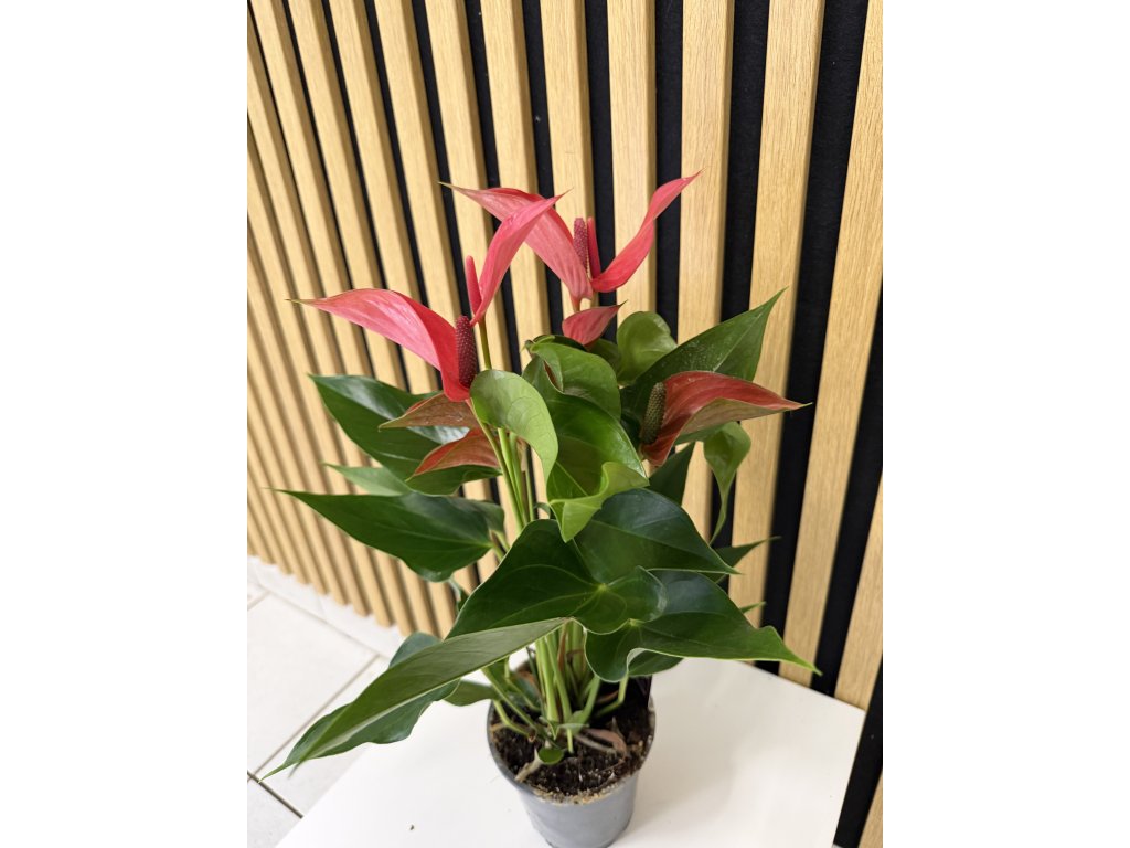 Anthurium je stálezelená rostlina. Její květy, tvořené barevným toulcem a žlutou palicí uprostřed, jsou symbolem elegance a dlouhověkosti – často vydrží kvést i několik měsíců. Díky kompaktnímu růstu se skvěle hodí do moderních interiérů, kanceláří i reprezentativních prostor.