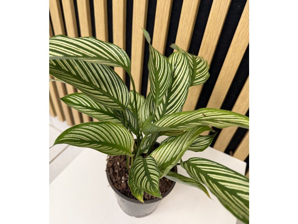 Calathea je vysoce dekorativní pokojová rostlina pocházející z tropických pralesů Jižní Ameriky. Okouzlí svými nádhernými listy s výraznými vzory a pestrými odstíny zelené, krémové, vínové či fialové barvy. Každý list je jako malý umělecký kousek, který dodá interiéru eleganci, exotický nádech a živou atmosféru. Díky svému atraktivnímu vzhledu je Calathea oblíbenou volbou do moderních bytů, kanceláří i zimních zahrad.