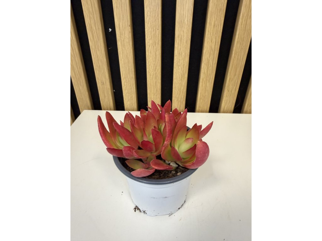 Crassula ‘Campfire’ je mimořádně dekorativní sukulent, který upoutá pozornost svým intenzivním vybarvením a netradičním tvarem listů. Úzké, protáhlé a mírně špičaté listy vyrůstají v hustých růžicích a při dostatku světla se zbarvují do sytých odstínů červené, oranžové až ohnivě karmínové barvy. Právě díky tomuto efektu získala rostlina své jméno „Campfire“, tedy táborový oheň.