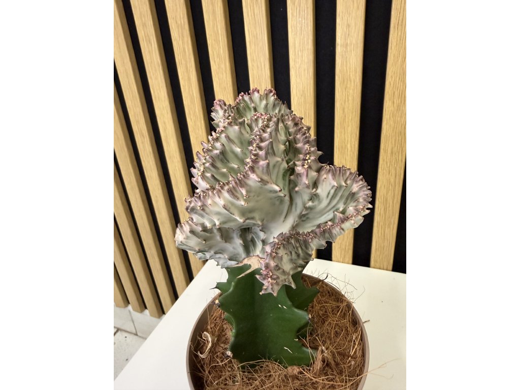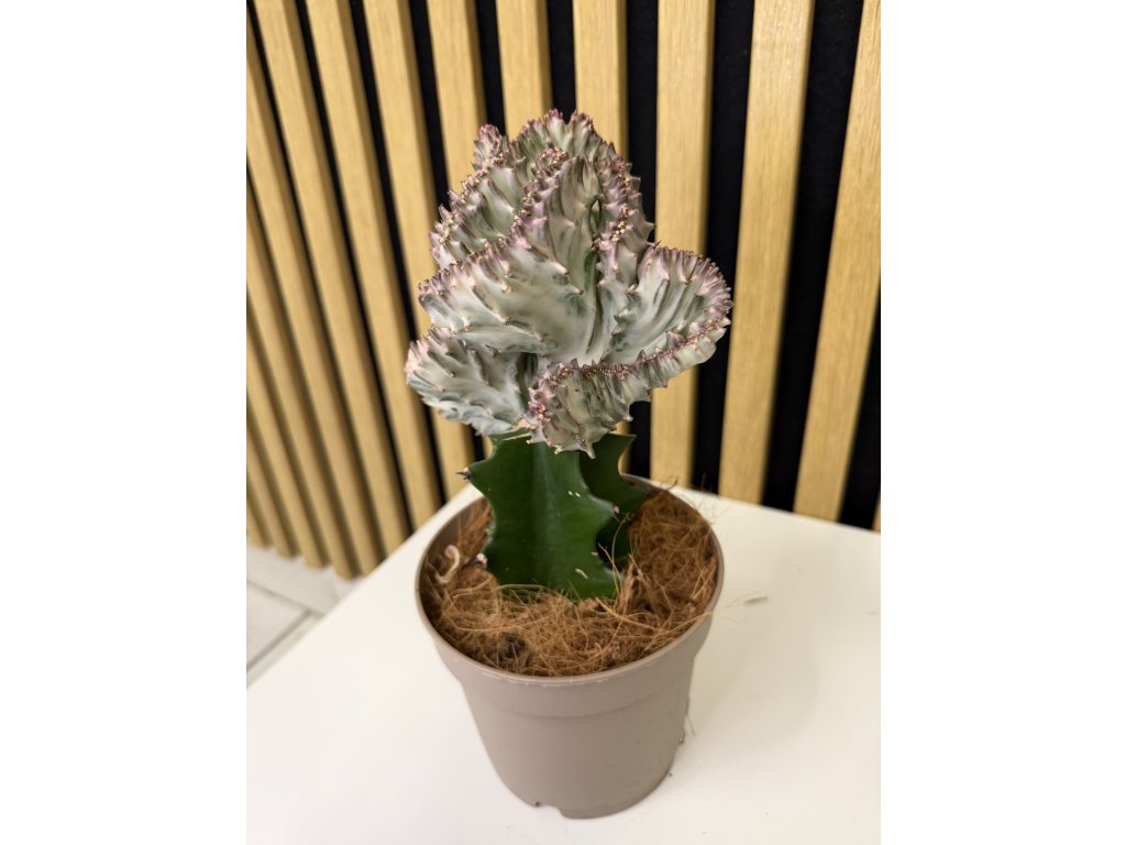 Euphorbia lactea je výrazná a exoticky působící sukulentní rostlina, která na první pohled připomíná kaktus. Díky svému netradičnímu tvaru a vzpřímenému růstu se stává nepřehlédnutelnou dominantou moderních interiérů. Je ideální volbou pro milovníky designových a nenáročných pokojových rostlin.