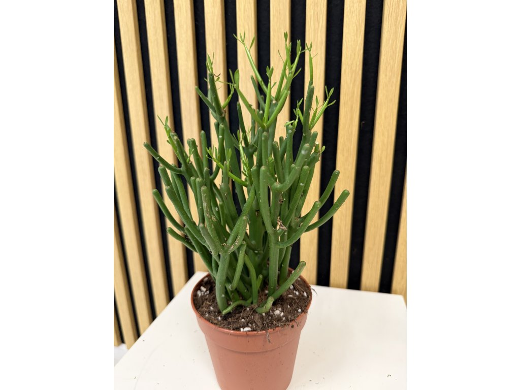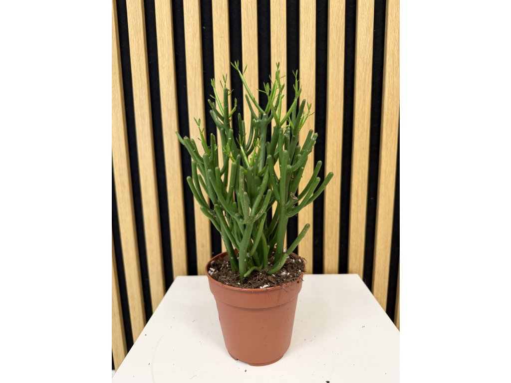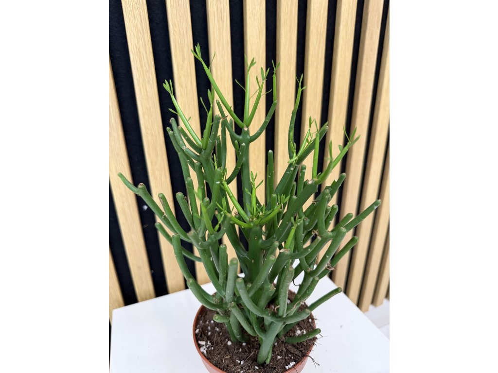 Euphorbia tirucalli, česky pryžec, je netradiční pokojová rostlina, která svým vzhledem okamžitě zaujme. Její tenké, vzpřímené, zelené větvičky připomínají svazek tužek – právě proto se jí říká „Tužkový strom“. Díky svému minimalistickému, architektonickému tvaru se skvěle hodí do moderních interiérů, kanceláří či designových prostor.