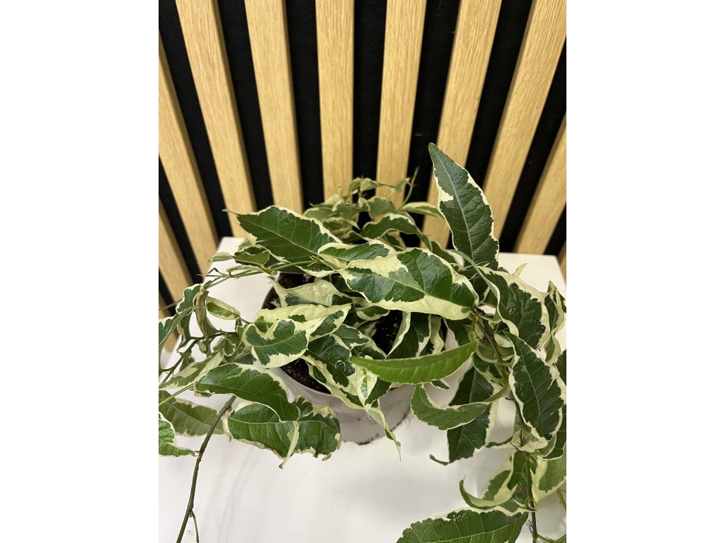 Listy jsou malé, šípovitě protáhlé, sytě zelené s výraznou žilnatinou. Roste jako převislý či částečně popínavý keřík, který může dorůst délky výhonů až 1–2 metry. V interiéru působí jemně, vzdušně a dokáže krásně oživit i menší prostory. Občasné zastřižení výhonů podpoří hustší a kompaktnější růst. Je vhodný i do závěsných nádob, kde jeho výhony mohou volně splývat.