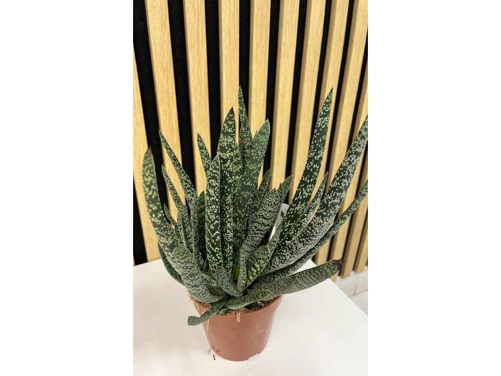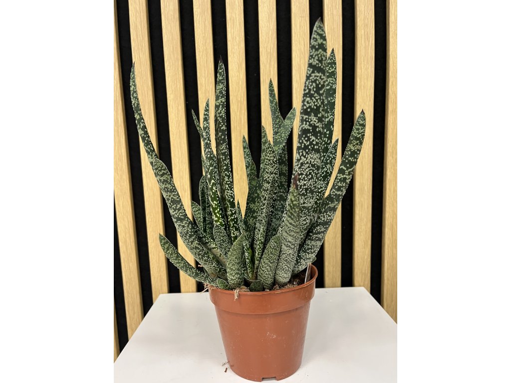 Gasteria verrucosa je elegantní sukulent, který okouzlí svým neobvyklým vzhledem i naprostou nenáročností. Její pevné, jazykovité listy zdobené drobnými bílými bradavičkami vytvářejí jedinečnou strukturu, díky níž působí rostlina téměř jako malá soška. Ideální volba do moderních interiérů, pracovny, ložnice i sbírky milovníků sukulentů.