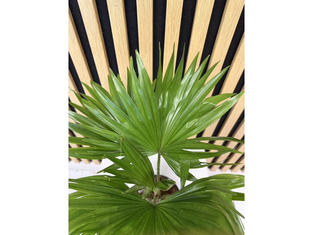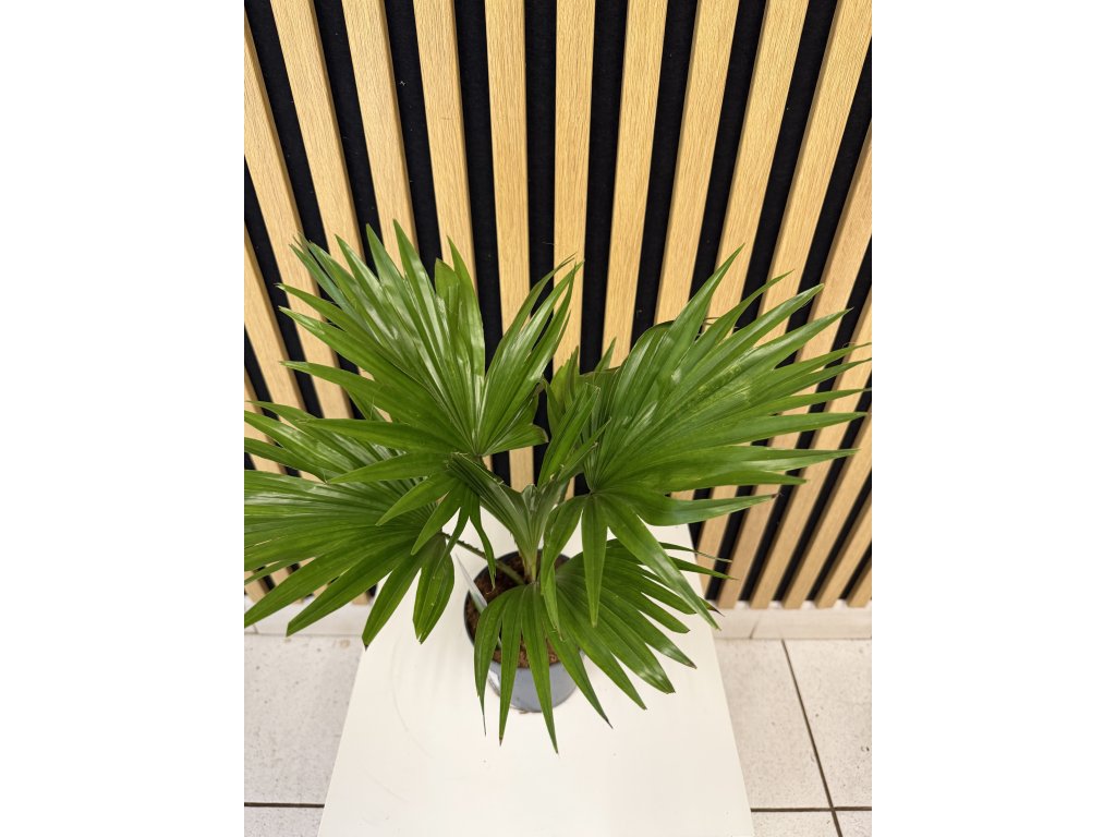 Livistona rotundifolia je dekorativní tropická palma pocházející z jihovýchodní Asie, která vyniká svými kulatými, vějířovitými listy s jemně dělenými okraji. Díky svému vzdušnému a exotickému vzhledu se stává výraznou dominantou prostoru a dodává interiéru nádech tropické elegance a svěžesti.