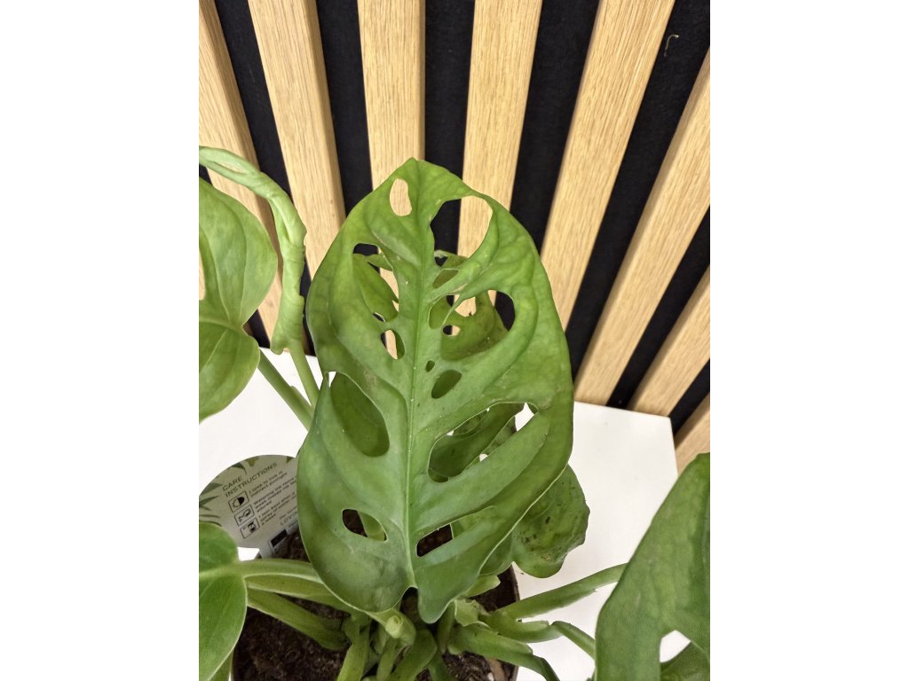 Má podlouhlé, sytě zelené listy s dekorativními otvory, které rostlině dodávají exotický a hravý charakter. Je to rychle rostoucí popínavá rostlina, která se pne po opoře nebo může převisat z květináče. Monstera Monkey Mask je designový klenot, který vnese do interiéru exotiku a moderní styl. Skvěle se hodí do bytů a kanceláří.
