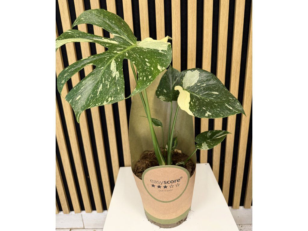 Monstera Thai Constellation je skutečným klenotem mezi pokojovkami – její velké, srdčité listy poseté krémově bílými až světle žlutými skvrnami působí jako umělecké dílo. Každý list je originál, stejně jako souhvězdí hvězd, podle kterých tato odrůda nese své jméno.