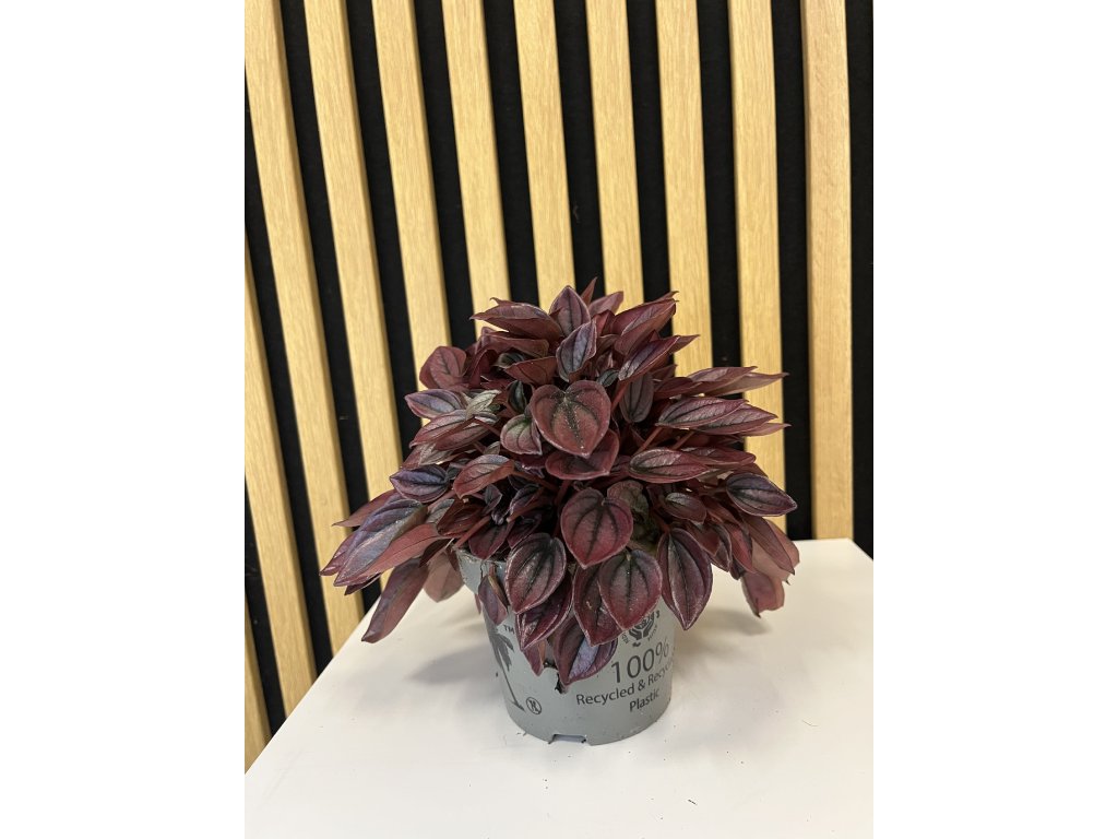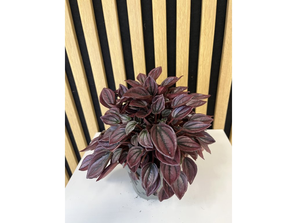 Peperomia caperata Cayenne je jedinečná pokojová rostlina, která okouzlí svými tmavě zelenými, hluboce žebrovanými listy s výrazným vínově červeným nádechem na spodní straně. Díky tomuto barevnému kontrastu působí velmi dekorativně a dodá interiéru nádech elegance a originality. Je kompaktní, nenáročná a ideální i do menších prostor.