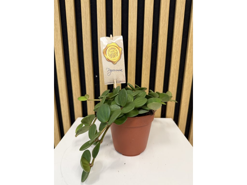 Peperomia tetraphylla ‘Hope’ je velmi oblíbená pokojová rostlina s jemným, převislým růstem a dekorativními, masitými listy uspořádanými do typických čtyřčetných přeslenů. Kulaté až oválné listy mají sytě zelenou barvu s jemnou kresbou a lesklým povrchem, díky čemuž působí svěže a elegantně po celý rok.