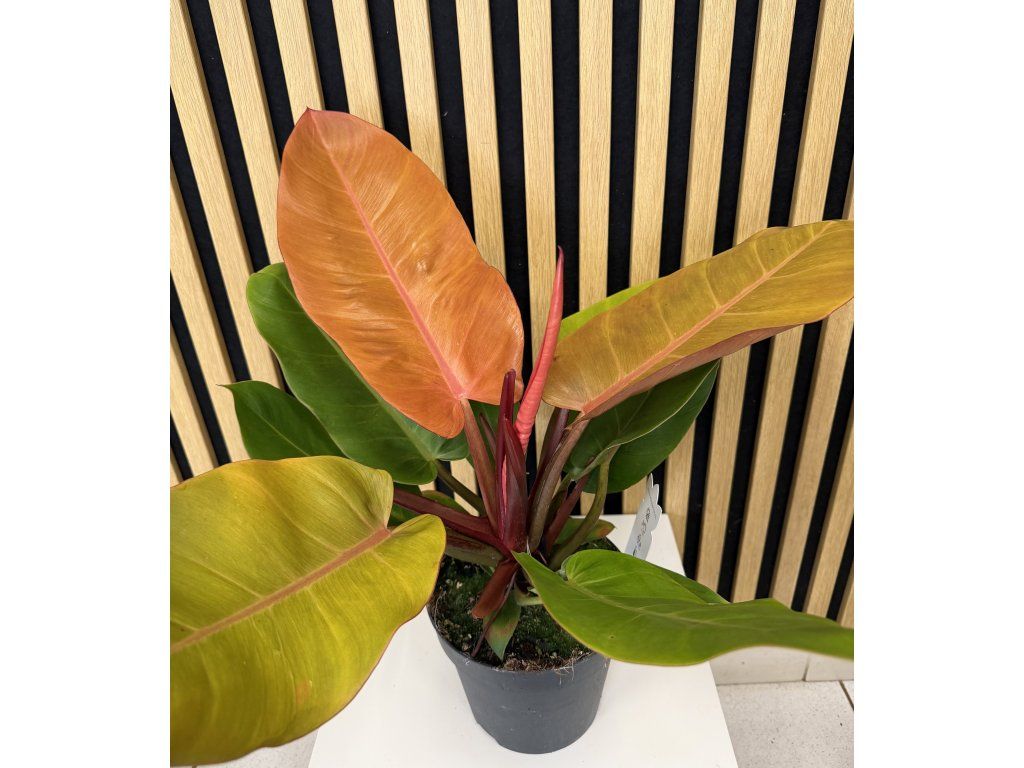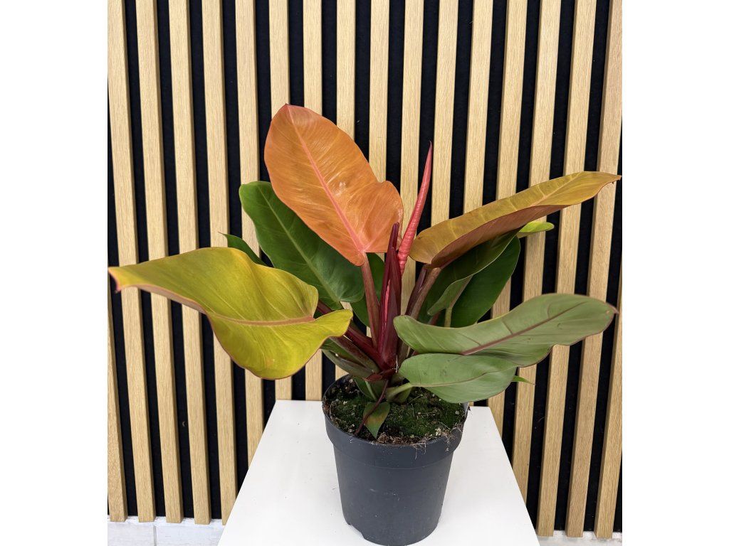 Philodendron Prince of Orange je atraktivní a velmi oblíbená pokojová rostlina, která vyniká svým jedinečným barevným přechodem listů. Nové listy raší v intenzivních odstínech oranžové a měděné barvy, postupně se mění na světle zelené až sytě zelené. Díky tomuto barevnému efektu působí rostlina živě, moderně a stává se výraznou dominantou každého interiéru.