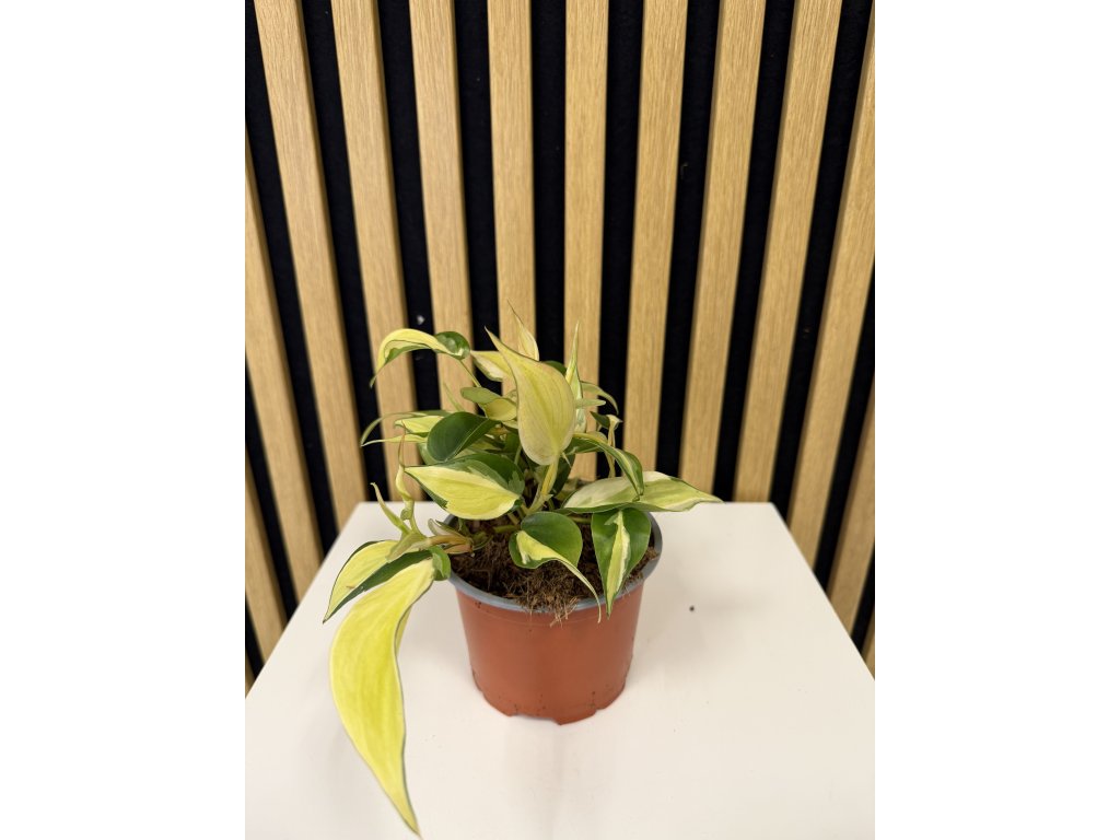 Philodendron scandens ‘Rio’ je elegantní a vysoce dekorativní šplhavý philodendron, který zaujme především svými výrazně panašovanými listy. Každý list má originální kresbu v kombinaci sytě zelené, světle zelené až krémově bílé barvy, často doplněné jemným stříbřitým nádechem. Díky této jedinečné kresbě je rostlina velmi oblíbená mezi sběrateli i milovníky moderních interiérů.