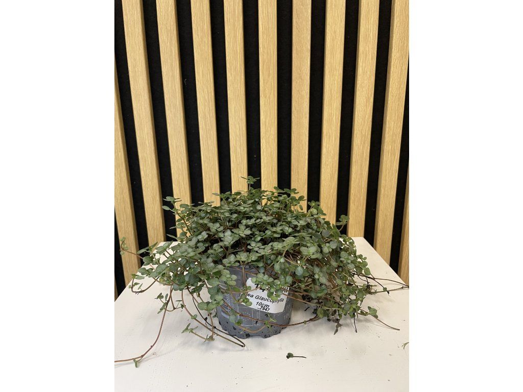 Pilea glaucophylla je půvabná drobnolistá rostlina pocházející z tropických oblastí Jižní Ameriky. Na první pohled zaujme svými jemnými, kulatými lístky s typickým stříbřitě modrozeleným odstínem, které vytvářejí hustý, převislý koberec. Díky svému křehkému, elegantnímu vzhledu je ideální volbou pro závěsné květináče, terária nebo moderní mini zahrádky.
