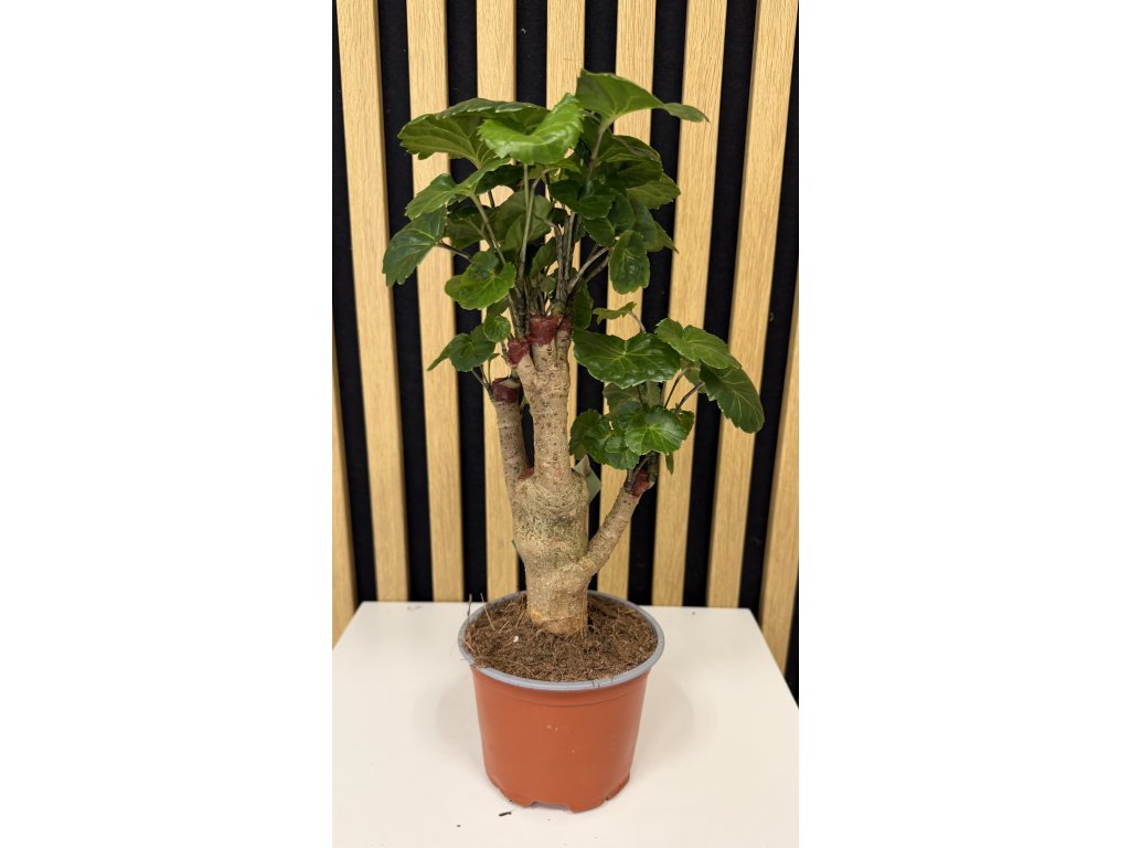 Polyscias, známý také jako arálie, je atraktivní pokojová rostlina, která si vás získá svým netradičním vzhledem. Má hustě větvený vzrůst, jemné stonky a dekorativní, členité listy v odstínech sytě zelené, někdy s panašovanými detaily. Díky svému keřovitému habitusu působí jako malý stromek, který dodá interiéru svěží, exotický a elegantní nádech.