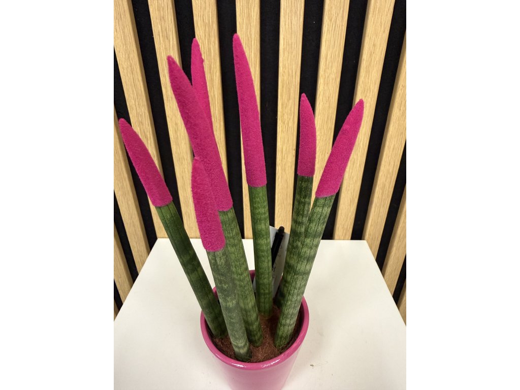 Sansevieria velvet, známá také jako válcovitý tchynin jazyk, je výrazná a moderní pokojová rostlina s neobvyklým vzhledem. Její silné, vzpřímené, válcovité listy připomínají zelené kopí a rostou v krásných trsech, které působí minimalisticky a stylově. Díky svému sochařskému tvaru se perfektně hodí do moderních interiérů, kanceláří i veřejných prostor. Je upravená speciální povrchovou úpravou, která dodává listům sametový (velvetový) vzhled a výraznou barvu. Díky tomuto modernímu zpracování se stává nepřehlédnutelným designovým doplňkem interiéru, který zaujme na první pohled.