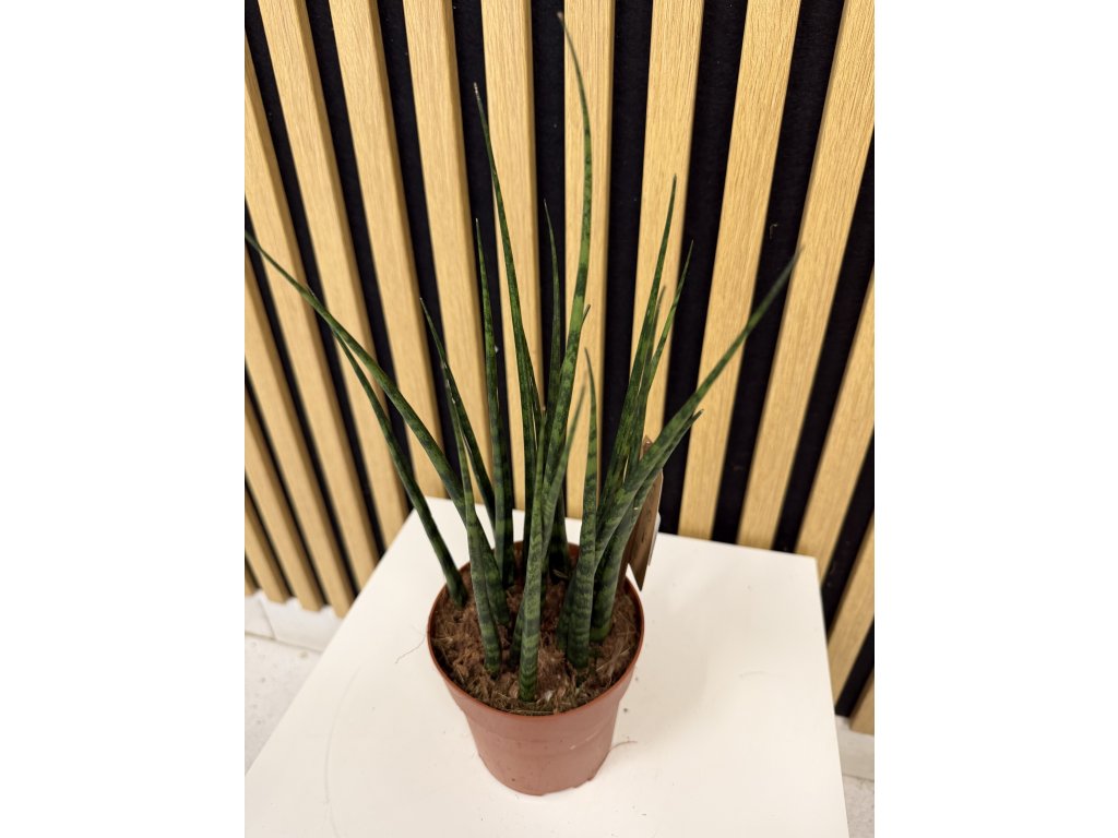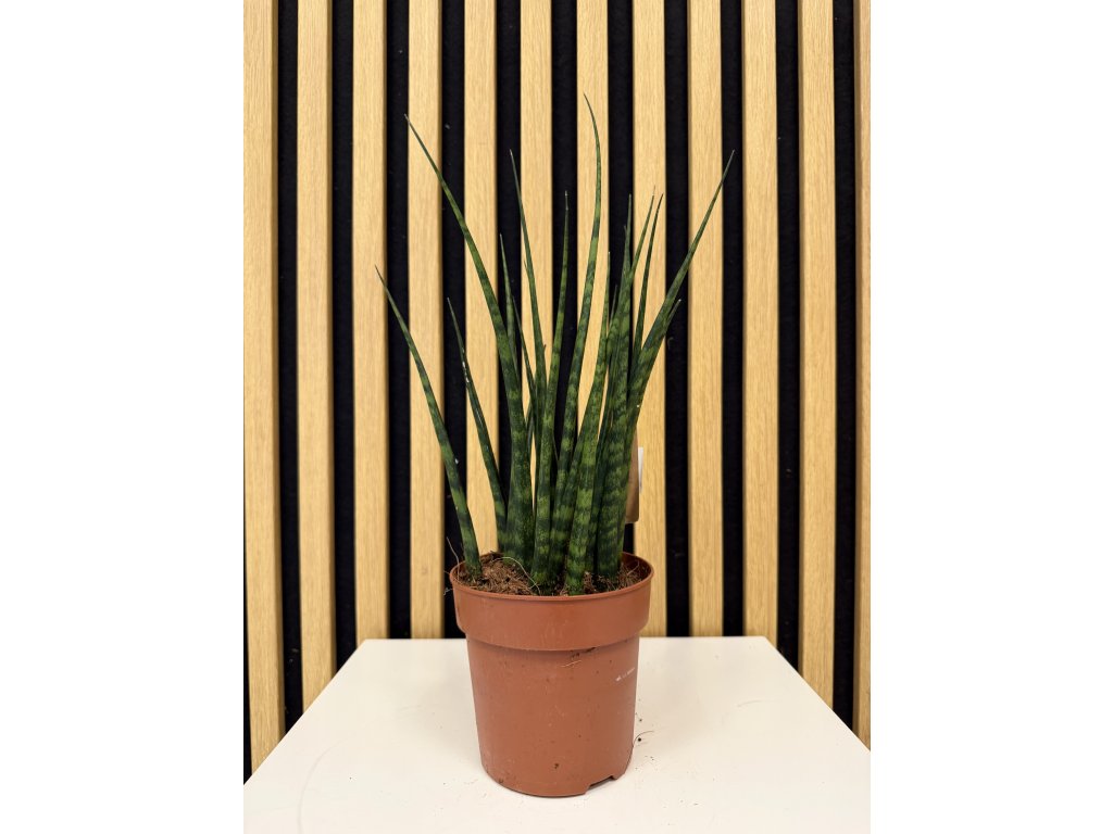 Sansevieria ‘Fernwood Mikado’ je atraktivní a velmi odolná pokojová rostlina, která vyniká svými úzkými, válcovitými listy vyrůstajícími do tvaru vějíře. Listy mají sytě zelenou barvu s jemným tmavším žíháním a vytvářejí kompaktní, elegantní siluetu připomínající moderní přírodní sochu. Díky svému minimalistickému vzhledu se skvěle hodí do moderních, industriálních i kancelářských interiérů.