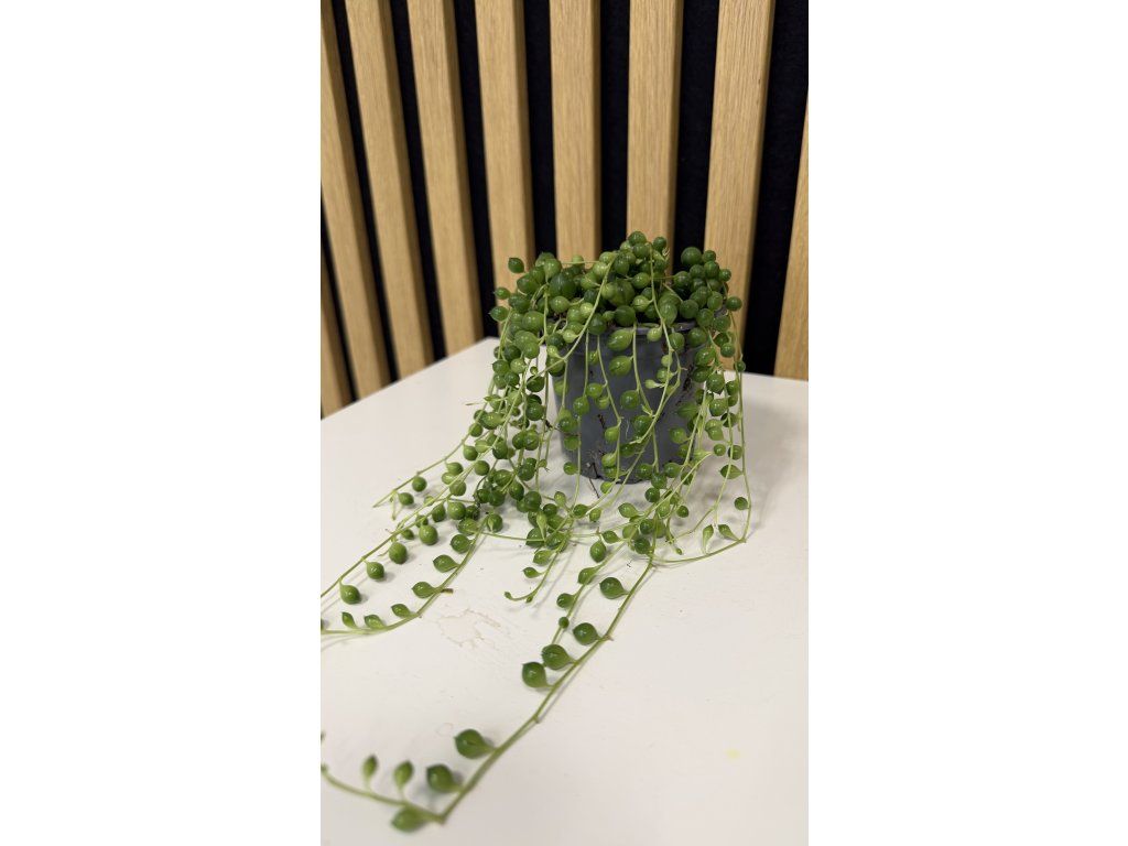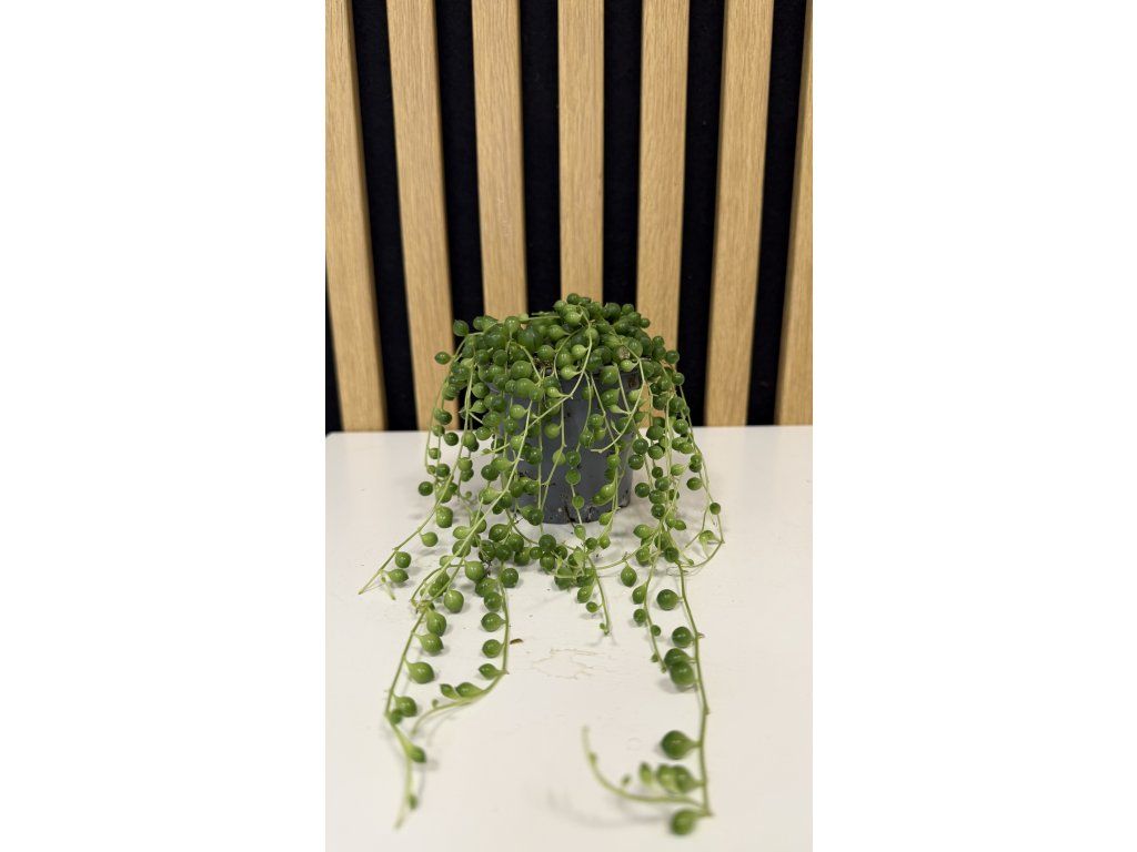 Senecio rowleyanus je ikonická převislá sukulentní rostlina, která zaujme na první pohled svými kulatými lístky připomínajícími zelené korálky navlečené na jemných stoncích. Díky svému netradičnímu vzhledu patří mezi nejoblíbenější závěsné pokojové rostliny a je skutečným designovým doplňkem moderních interiérů.
