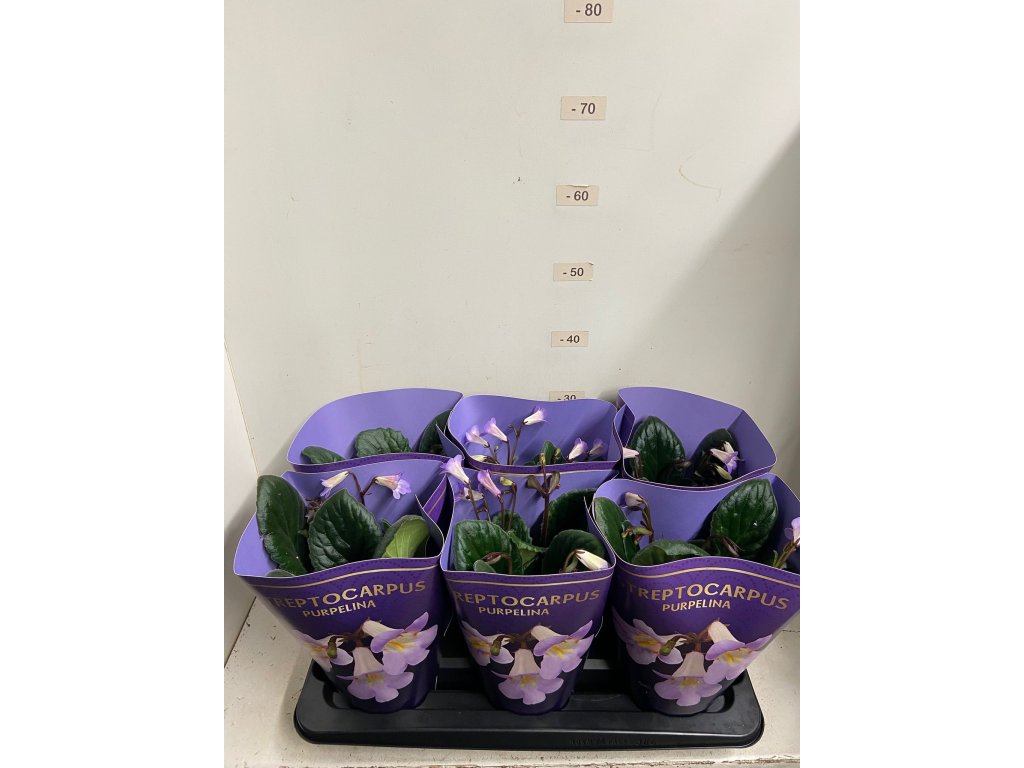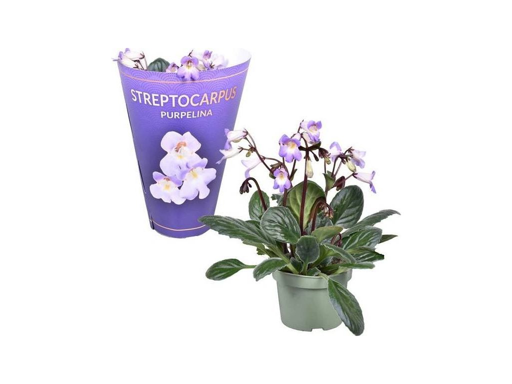 Květy odrůdy ‘Purpelina’ jsou středně velké až velké, s jemně zvlněnými okvětními lístky. Dominantní je hluboký purpurově-fialový odstín, často doplněný tmavším žilkováním v hrdle květu, které dodává rostlině elegantní a luxusní vzhled. Při dobré péči kvete opakovaně a téměř nepřetržitě od jara do podzimu. Patří mezi moderní hybridy vyšlechtěné pro dlouhé a bohaté kvetení a nenáročné pěstování v interiéru.